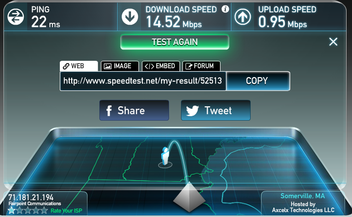 You can click on "Share This Result" in the upper right corner under Upload Speed if you want to share the results with Acuity IT or your ISP.